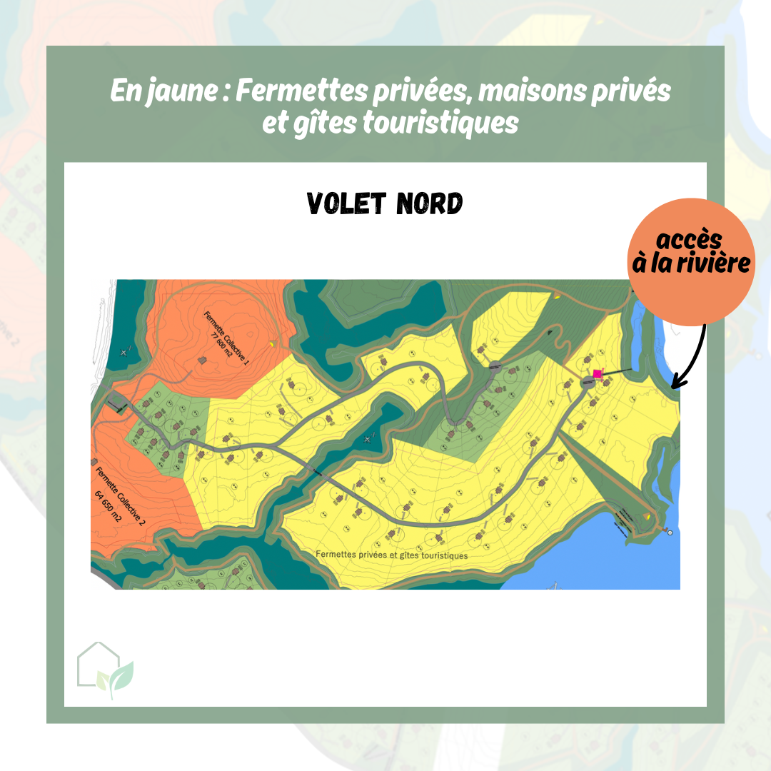 · Des fermettes privées pour se construire une maison et développer des projets d'agriculture, en jaune sur la carte.